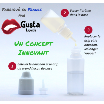 Il faut incorporer le mélange d'arôme dans le flacon de base dont vous avez choisi le taux de nicotine.